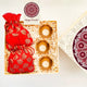 Hamper contains a pouch of mixed cookies, a pack of organic scented potpourri All in a designer-branded gift box INR 1120+ GST (based on quantity and food item selected prices will vary)