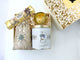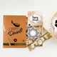 The hamper contains Jute and gold pouches filled with chocolates and premium cashews and a set of 2 brass diyas. All packed in a designer-branded box. INR 1450 + GST (based on quantity and food item selected prices will vary)