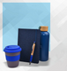 The UG Junior Joining Kit includes a diary, pen, and bottle in matching colors for a sleek look. Available in Red, Blue, Black, White, and more, with full logo customization on all items and the box. A simple yet impactful welcome kit!